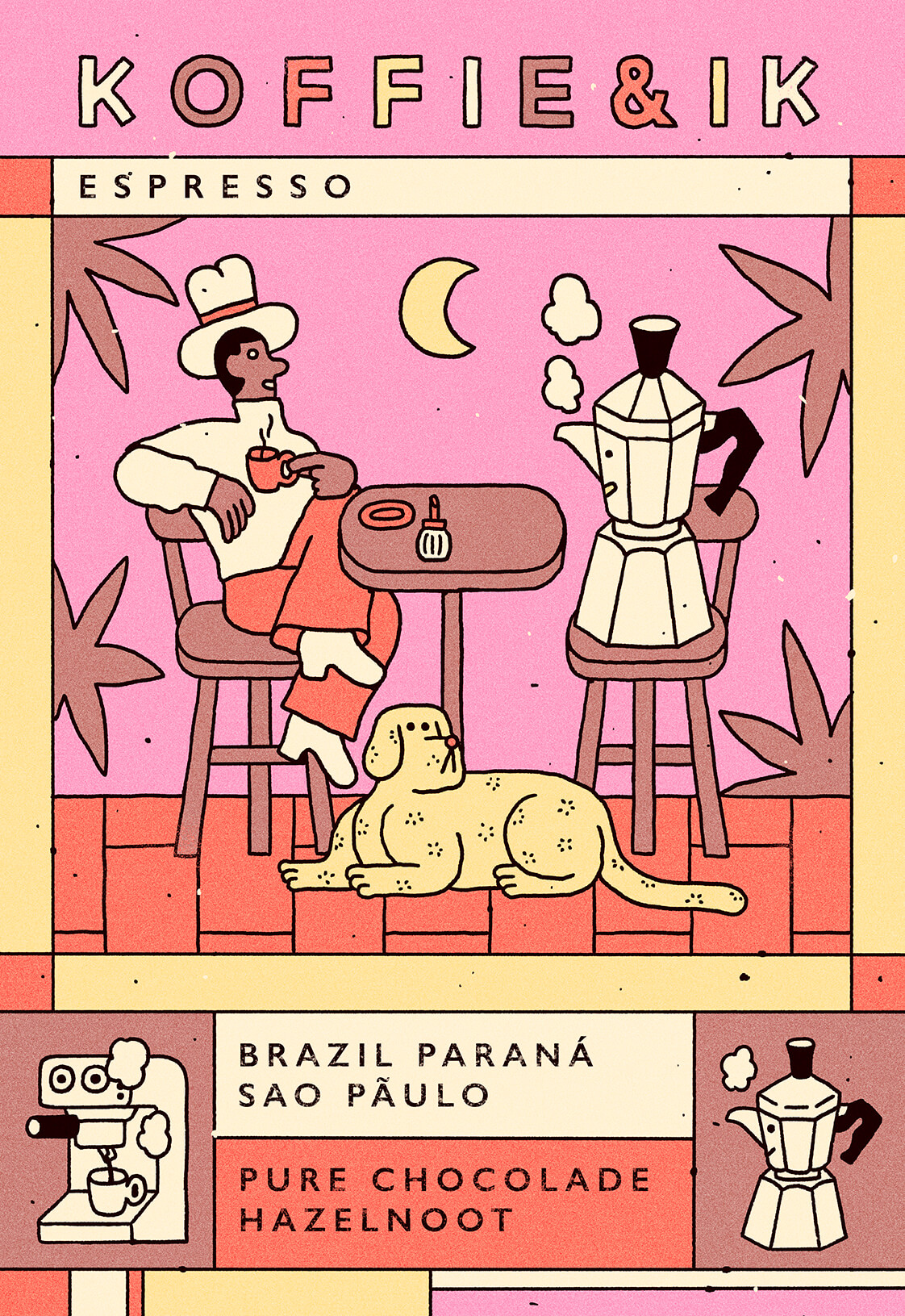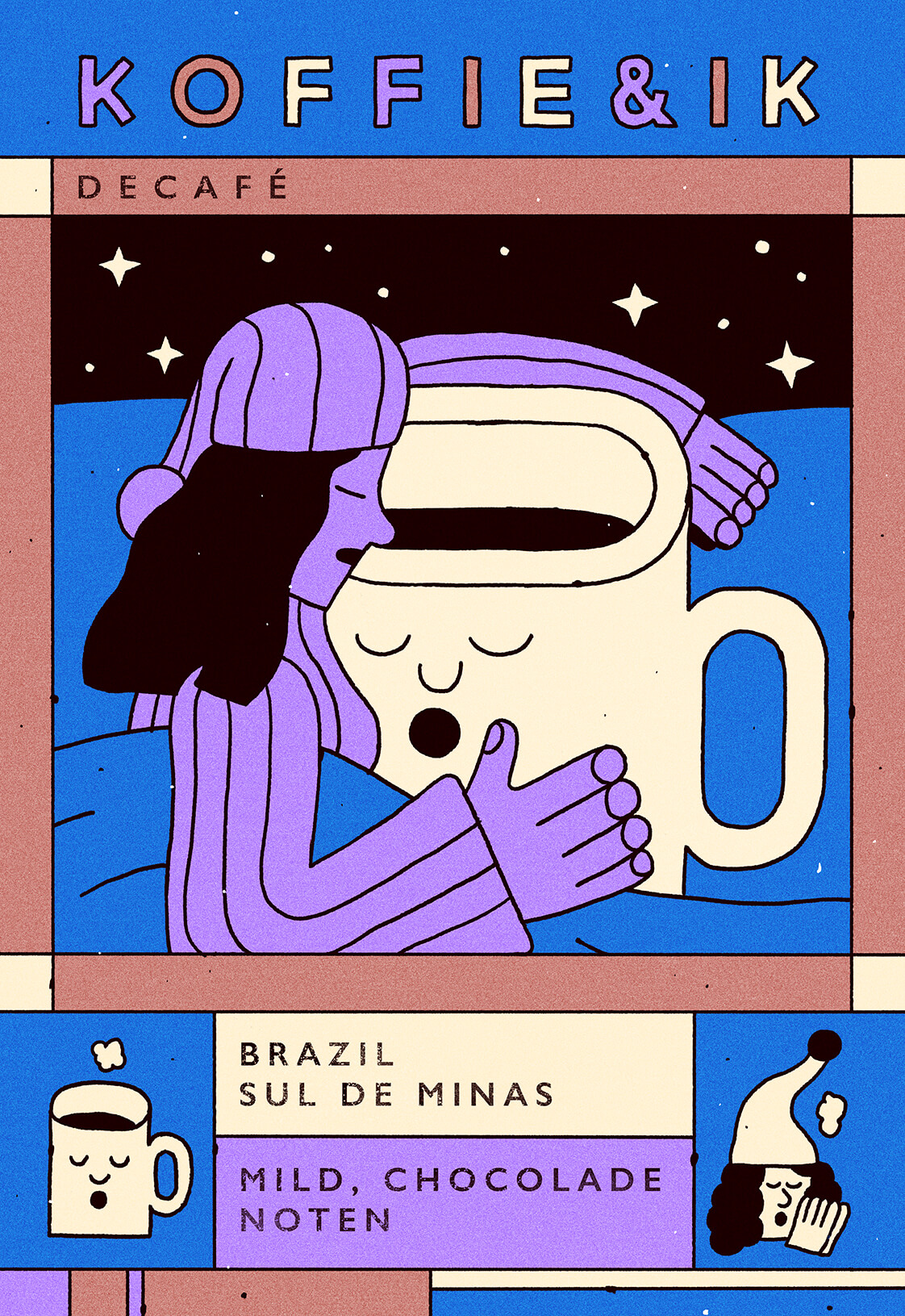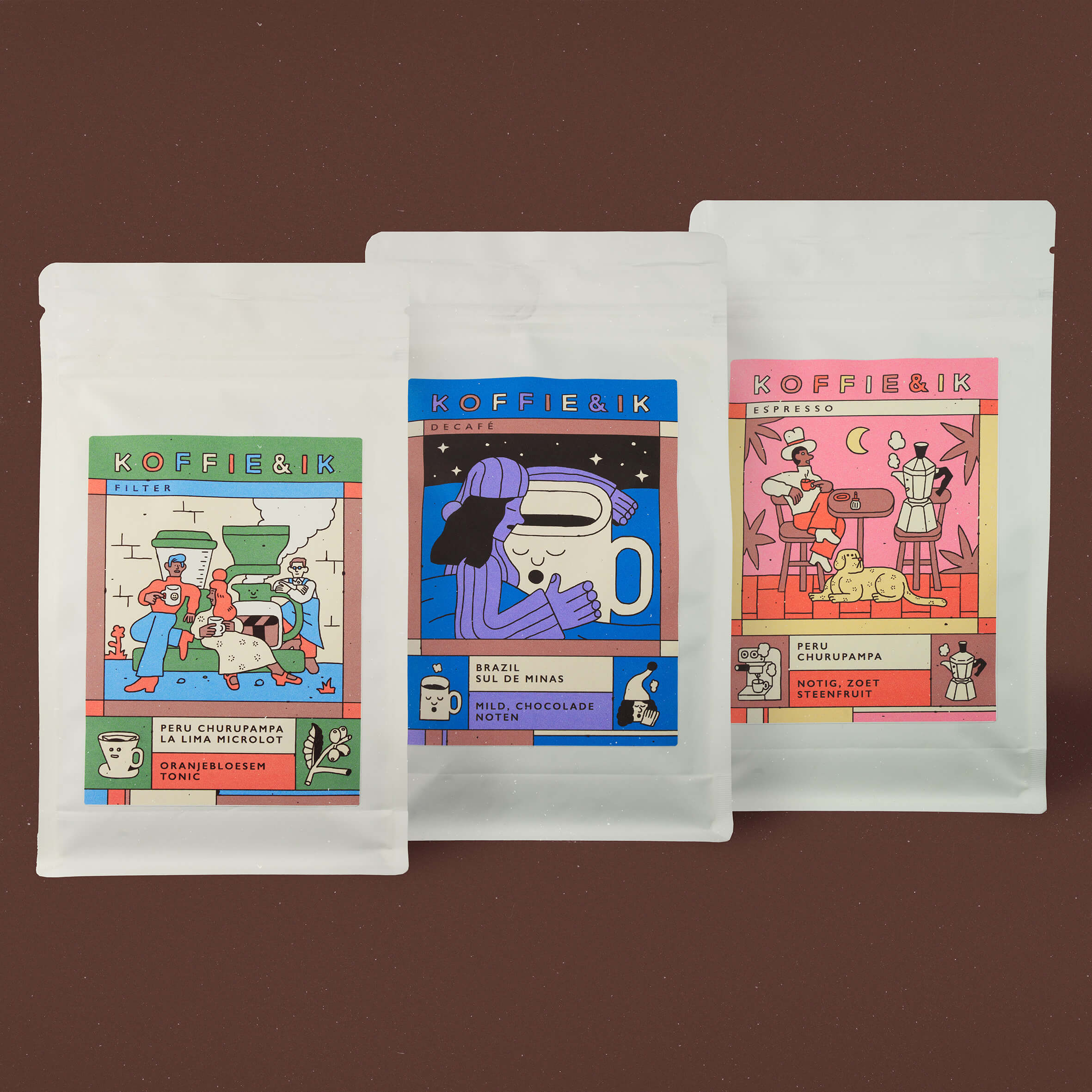 Label designs for a delicious range of coffee beans by Koffie & Ik.