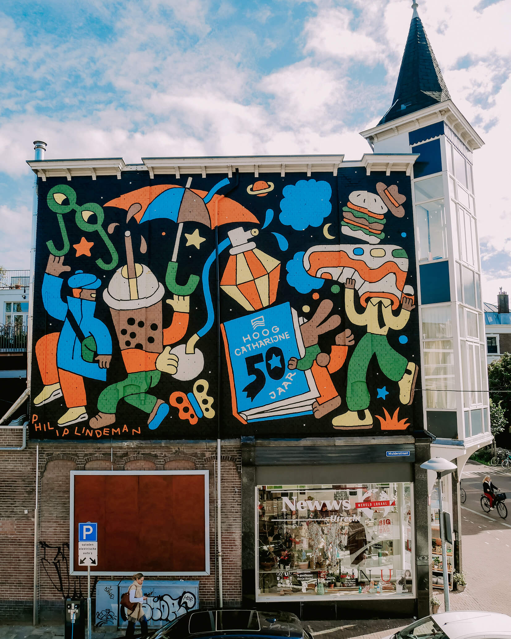 A commissioned mural that i painted to celebrate the 50th anniversary of Utrecht’s shopping mall Hoog Catharijne.