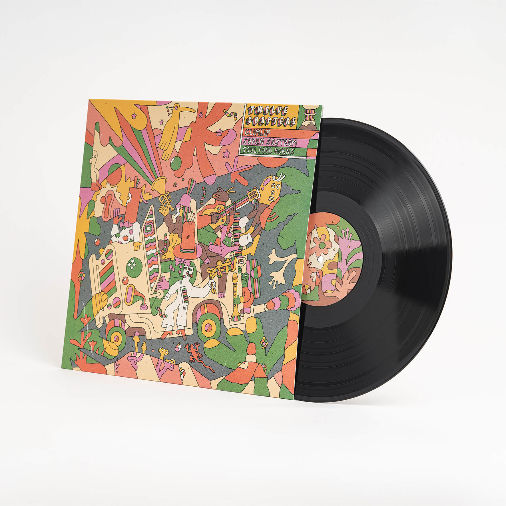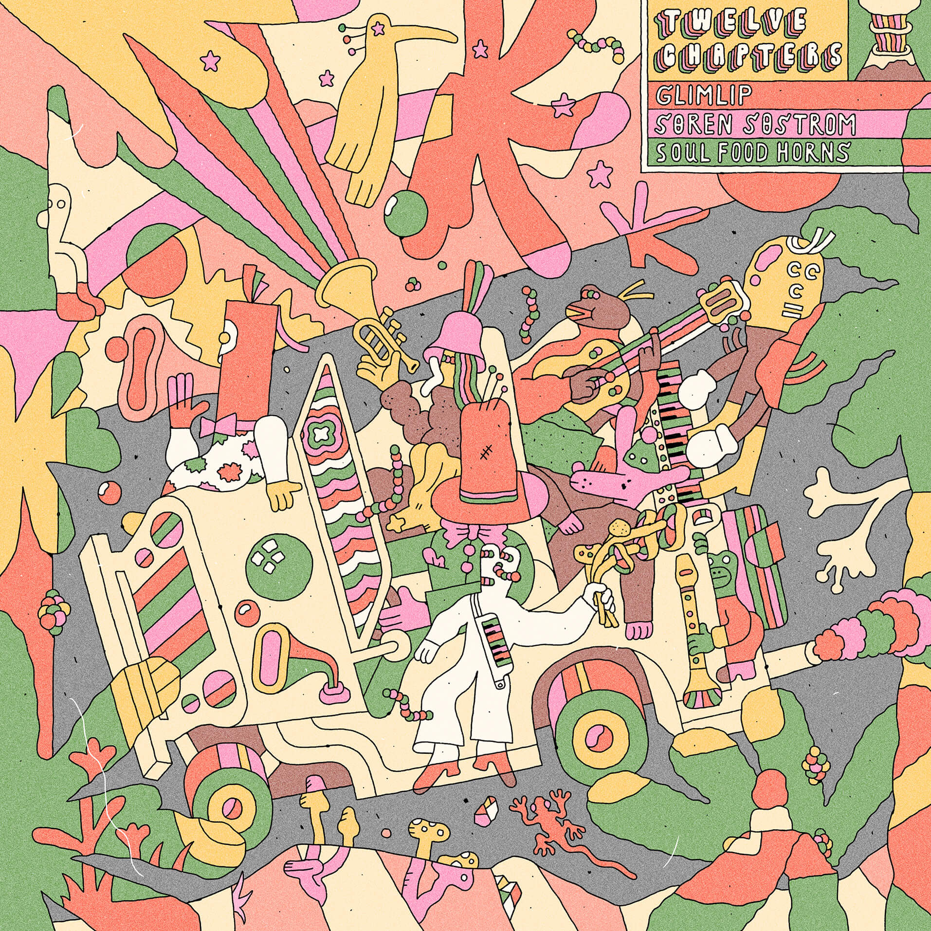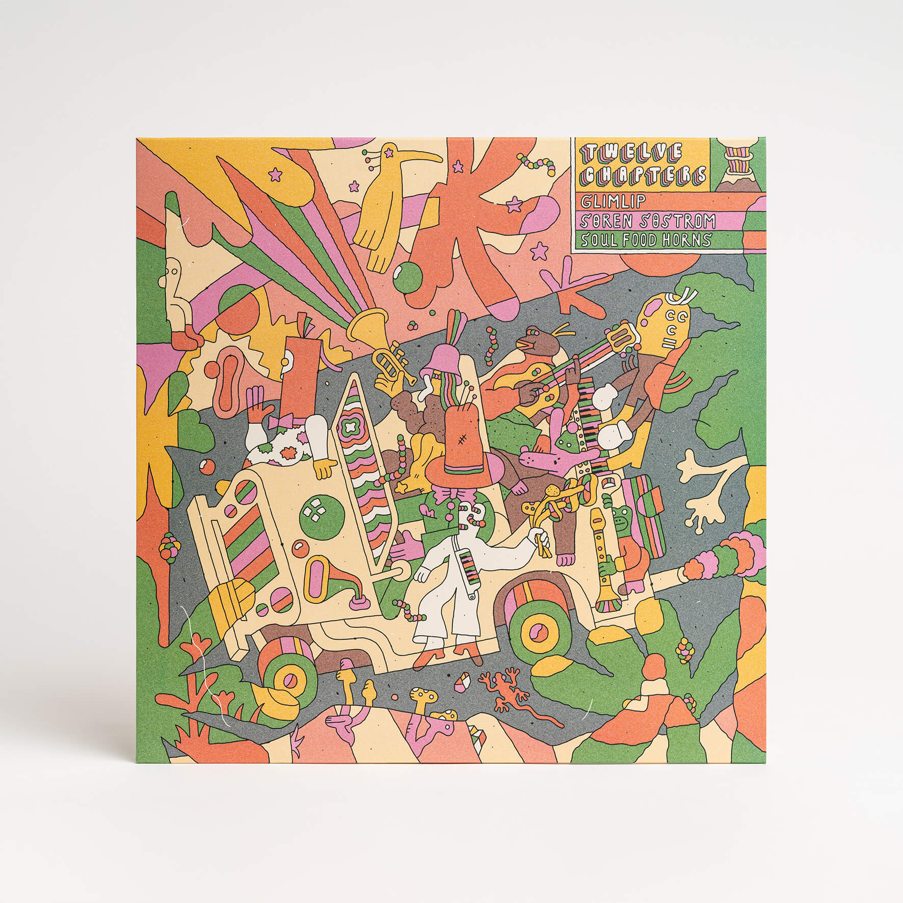 Record sleeve design for Twelve Chapters – a collaborative album by Glimlip, Søren Søstrom and Soul Food Horns.