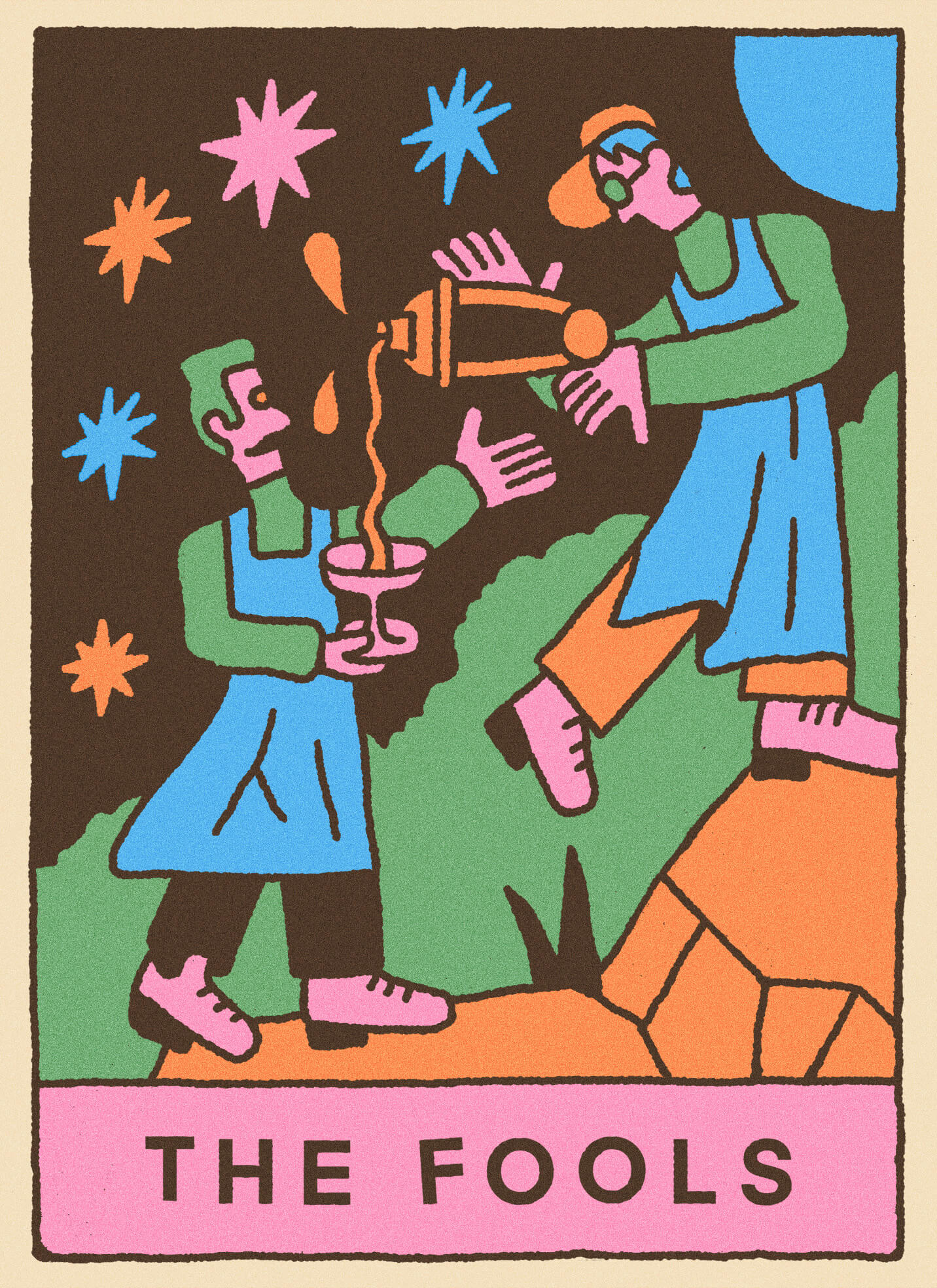 I had the pleasure of creating artworks and a logo for Utrecht’s brand new cocktail bar The Fools. And of course they opened very appropriately on April Fools day.